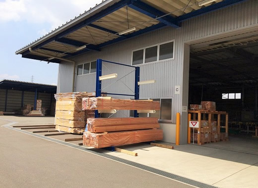 羽柄材の材料置き場は在庫状況が誰でも簡単に把握できるように配列し、通し柱は加工モレ・出荷モレを