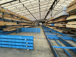 このラックが無ければ、種類が多い建築木材の保管は実現しなかったとの