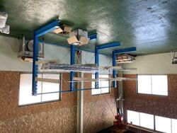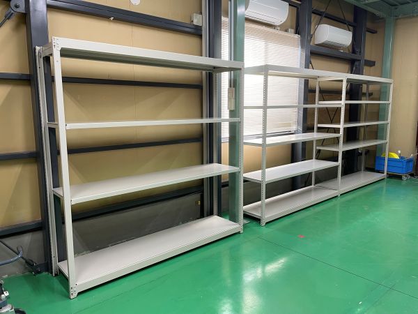 クラフトテープや接着のりを詰めた段ボールをメーカー不明の棚に収納していましたが、