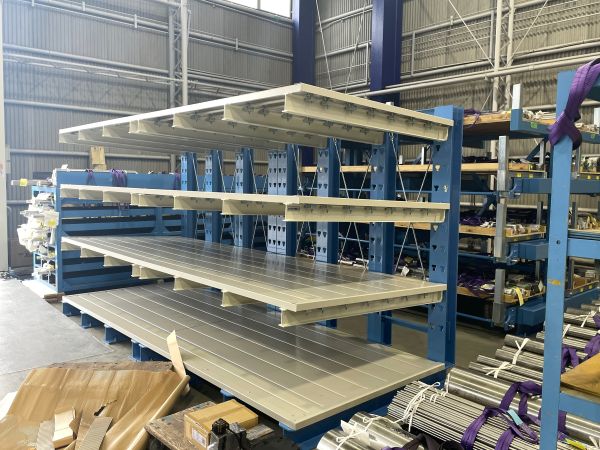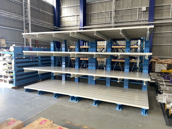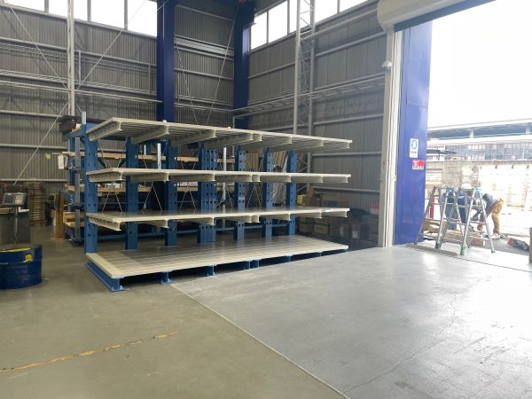 これまで床面に広く並べていた材料・製品を縦方向に整理して収納することが可能になりました。