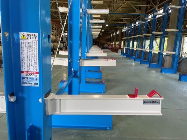 保管する際はロールから出ている芯棒の両端をバーラックのアームに載せる形となっています。