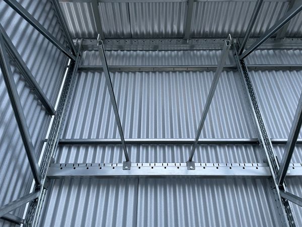 屋外の空きスペースに屋根付きの立て掛け専用ラックを導入しました。